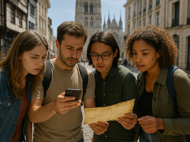 escape game urbainVous courez, plan en main, sous les colombages d’une ruelle rouennaise. Une alarme numérique s’affiche : « Il ne reste que 14 minutes ! ». Votre équipière scanne un QR-code …
